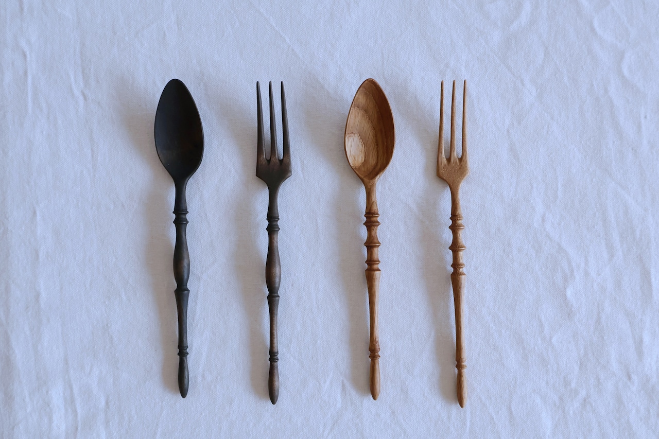 長野県木曽市で木工作品を制作されている鈴木潤吾さんのカトラリー。