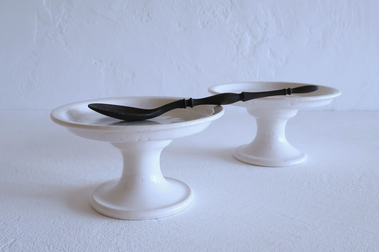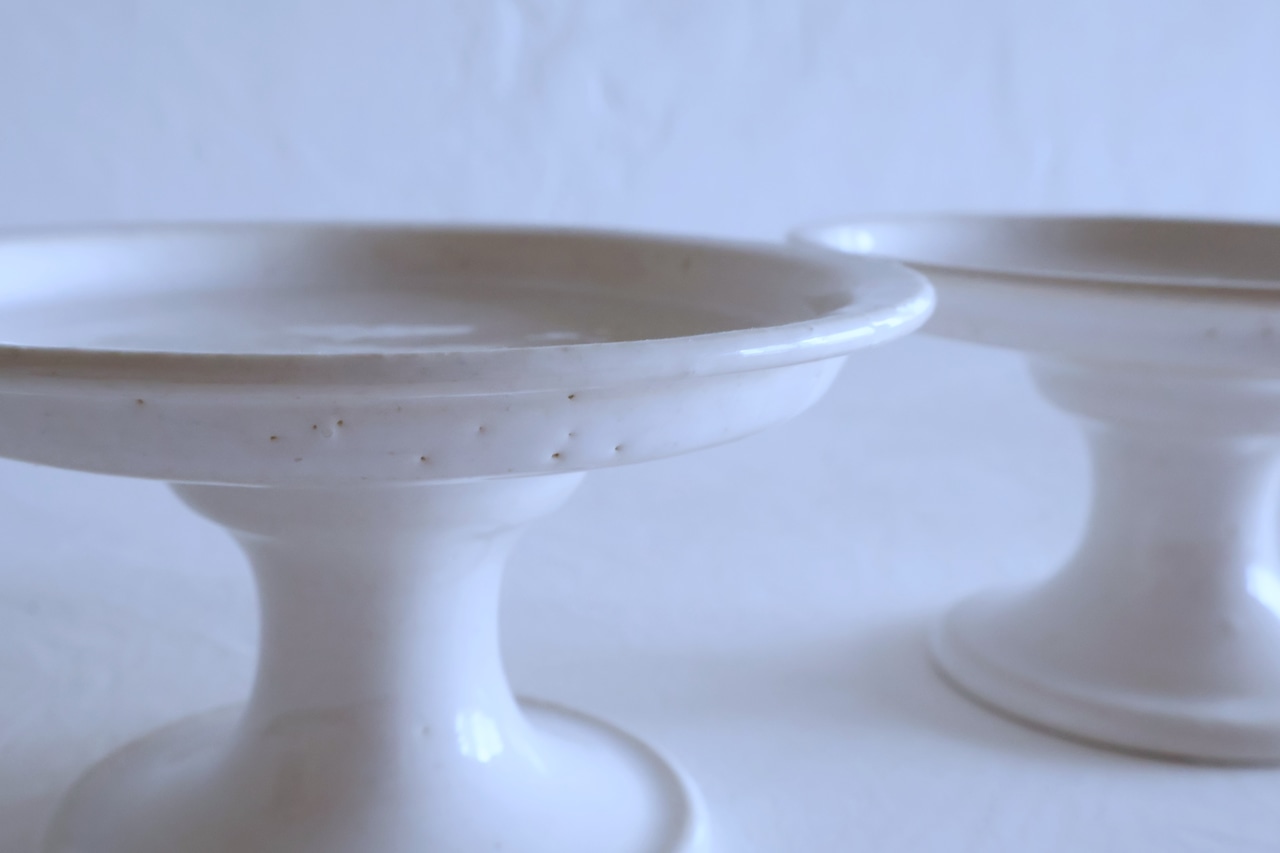 少し粗めな土の陶器に使われている釉薬は、ぽってりやわらかでありながらな精錬な白と焼き締めの少し黄味がかった楽しいテクスチャーのものがあります。