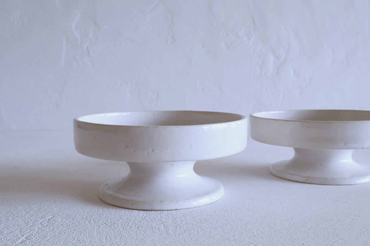 少し粗めな土の陶器に使われている釉薬は、ぽってりやわらかでありながらな精錬な白と焼き締めの少し黄味がかった楽しいテクスチャーのものがあります。