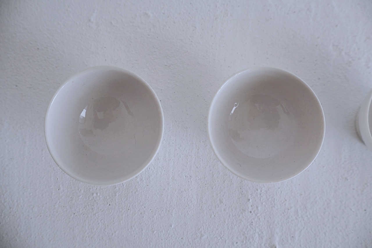 少し粗めな土の陶器に使われている釉薬は、ぽってりやわらかでありながらな精錬な白と焼き締めの少し黄味がかった楽しいテクスチャーのものがあります。