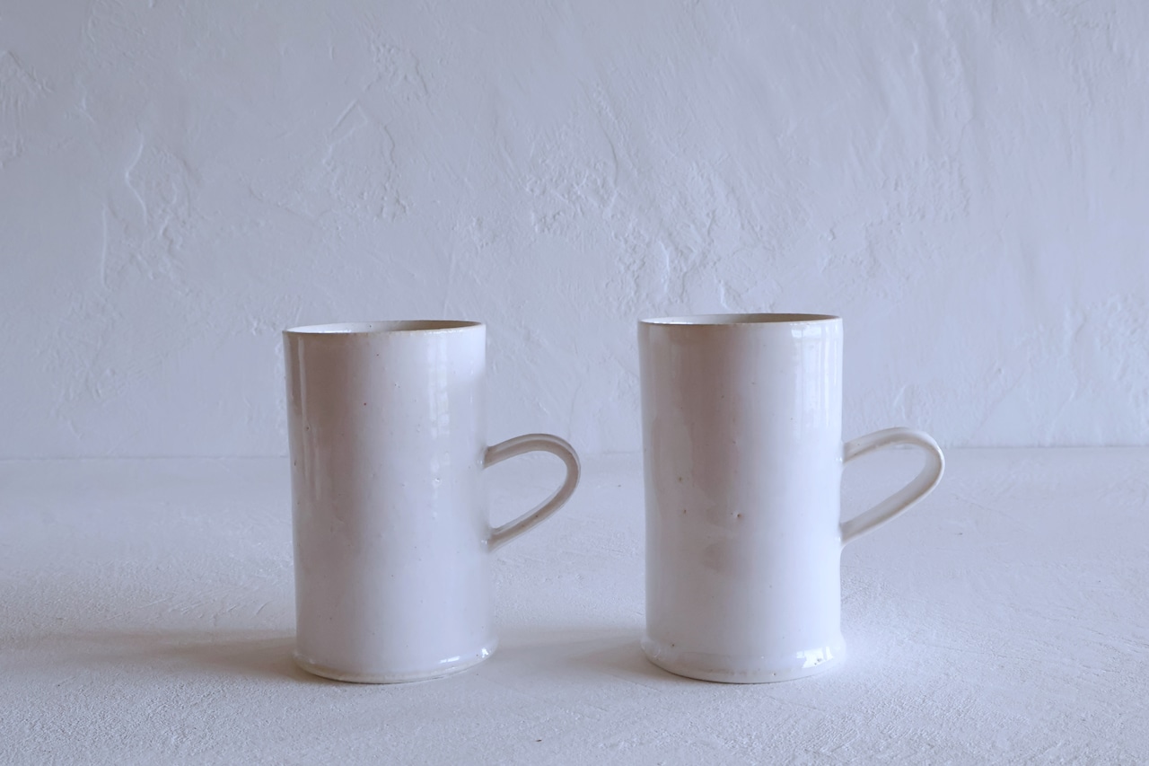 少し粗めな土の陶器に使われている釉薬は、ぽってりやわらかでありながらな精錬な白と焼き締めの少し黄味がかった楽しいテクスチャーのものがあります。