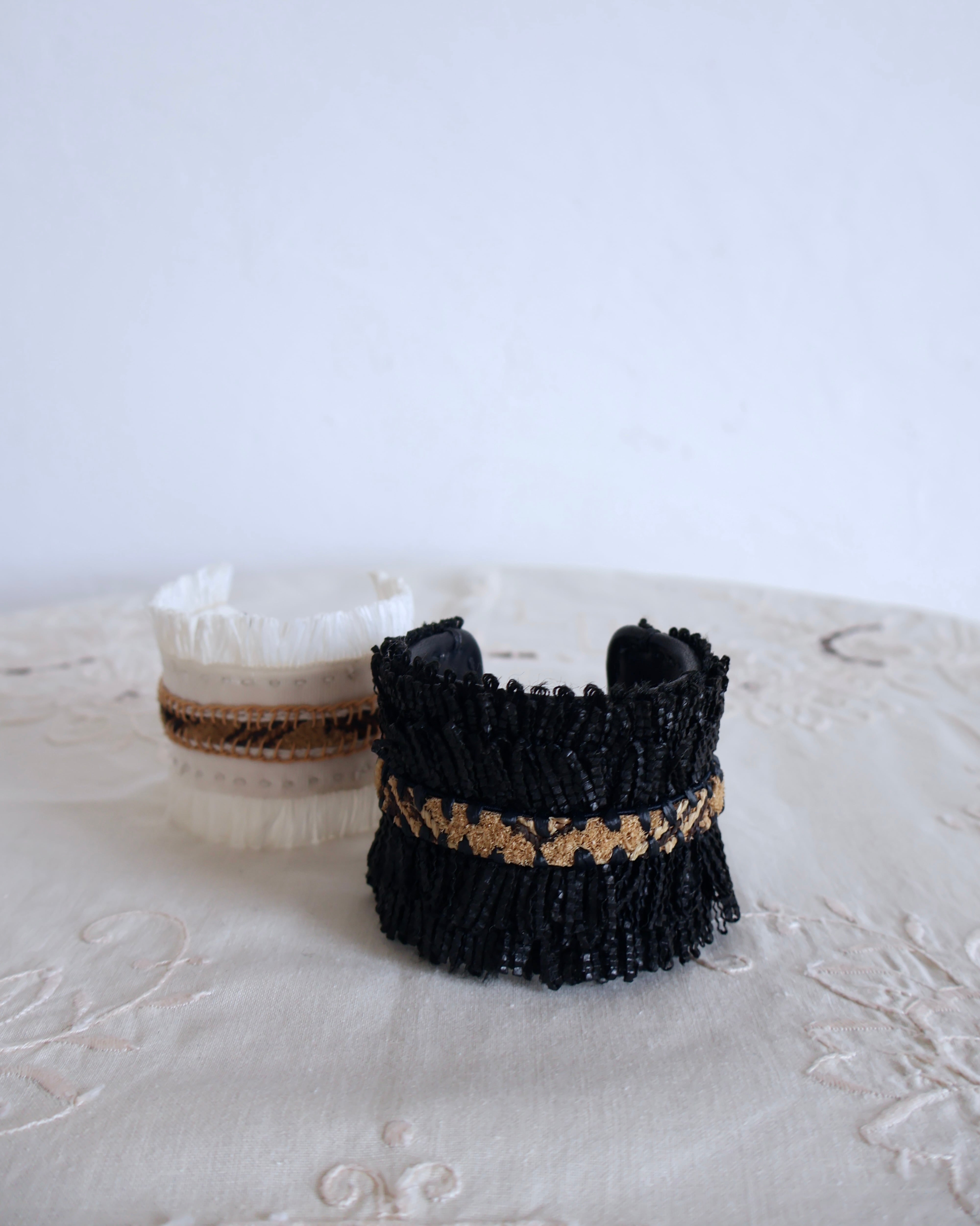 素材 クバ布 / レザー /ラフィア/ ビーズ