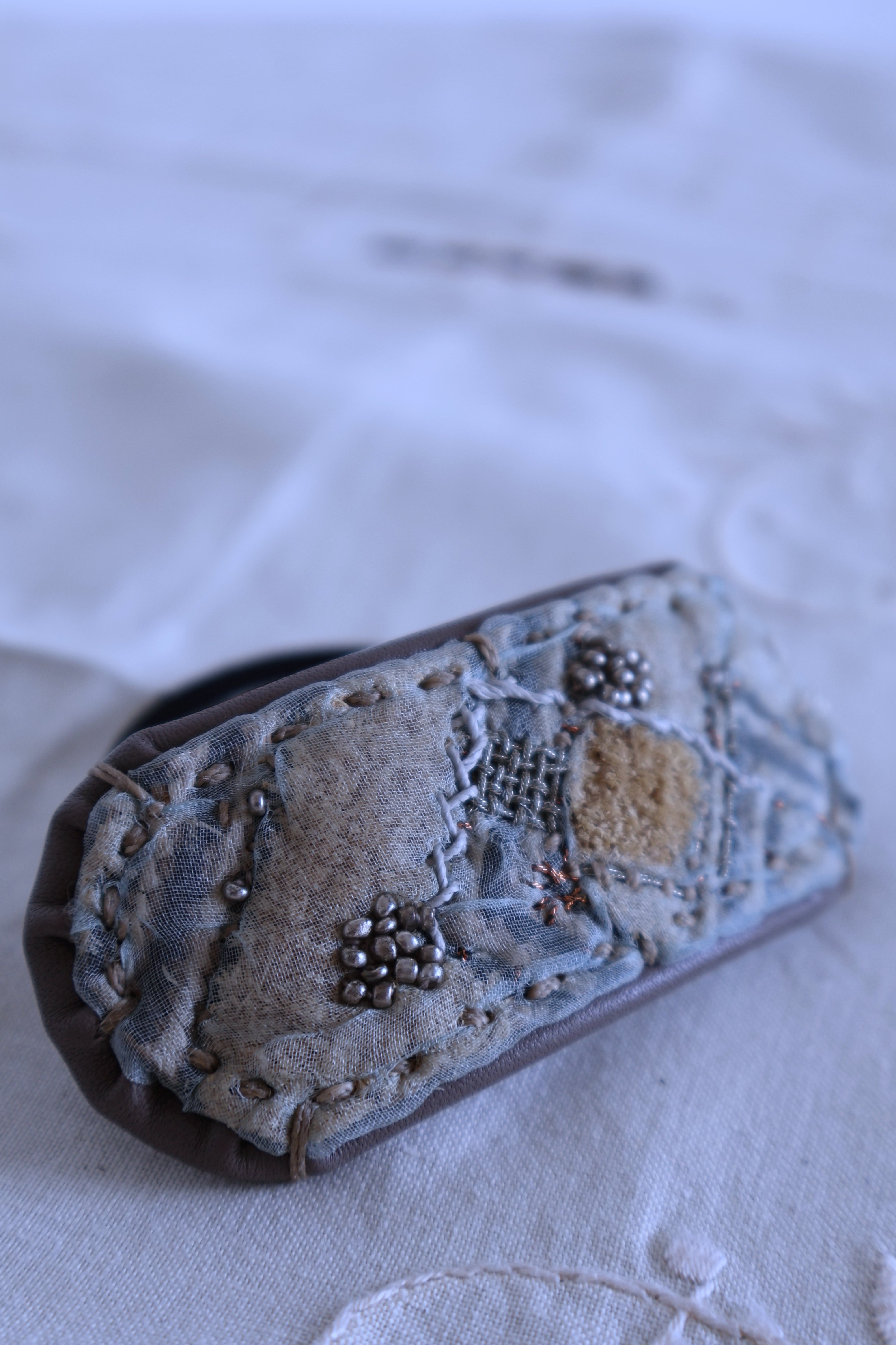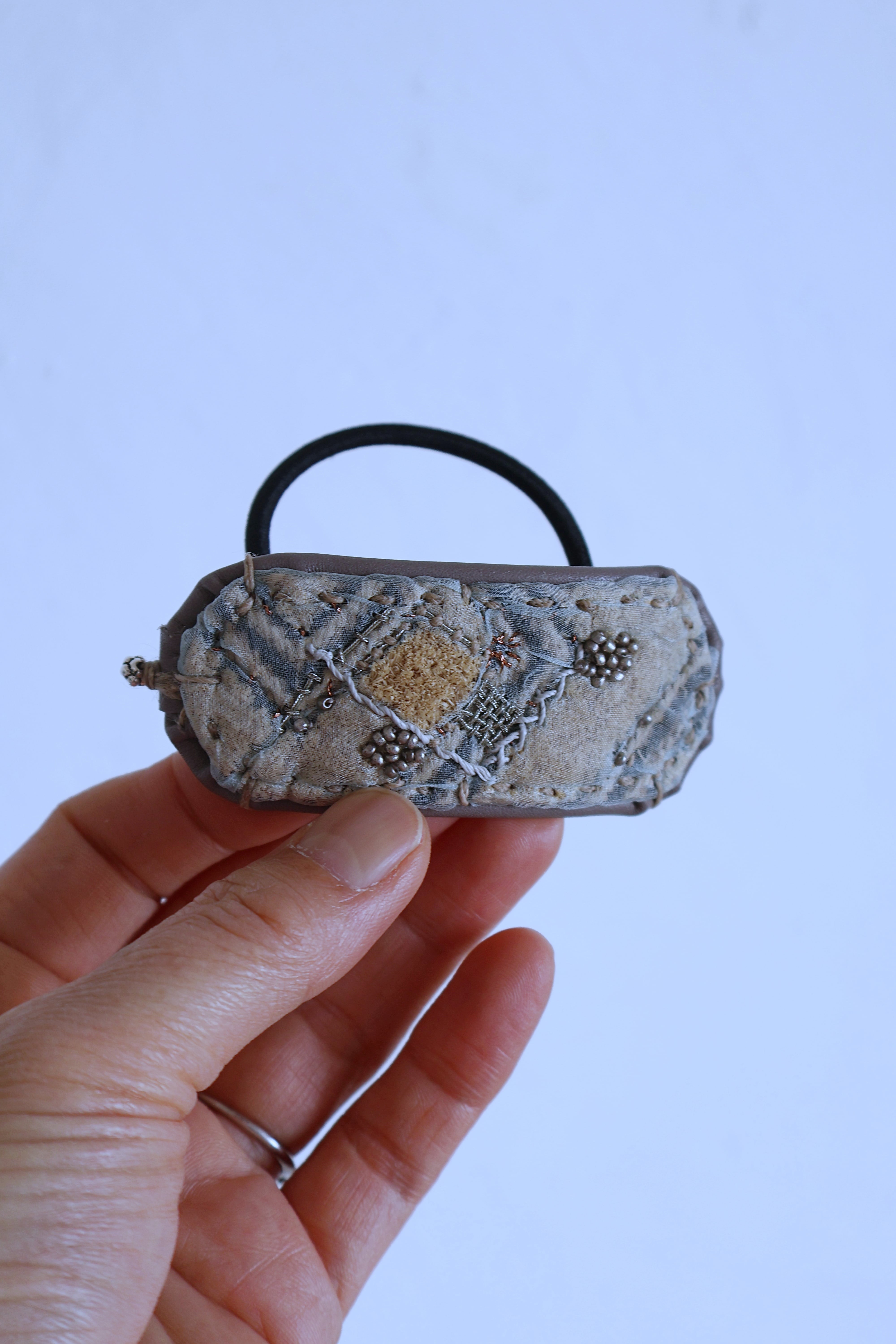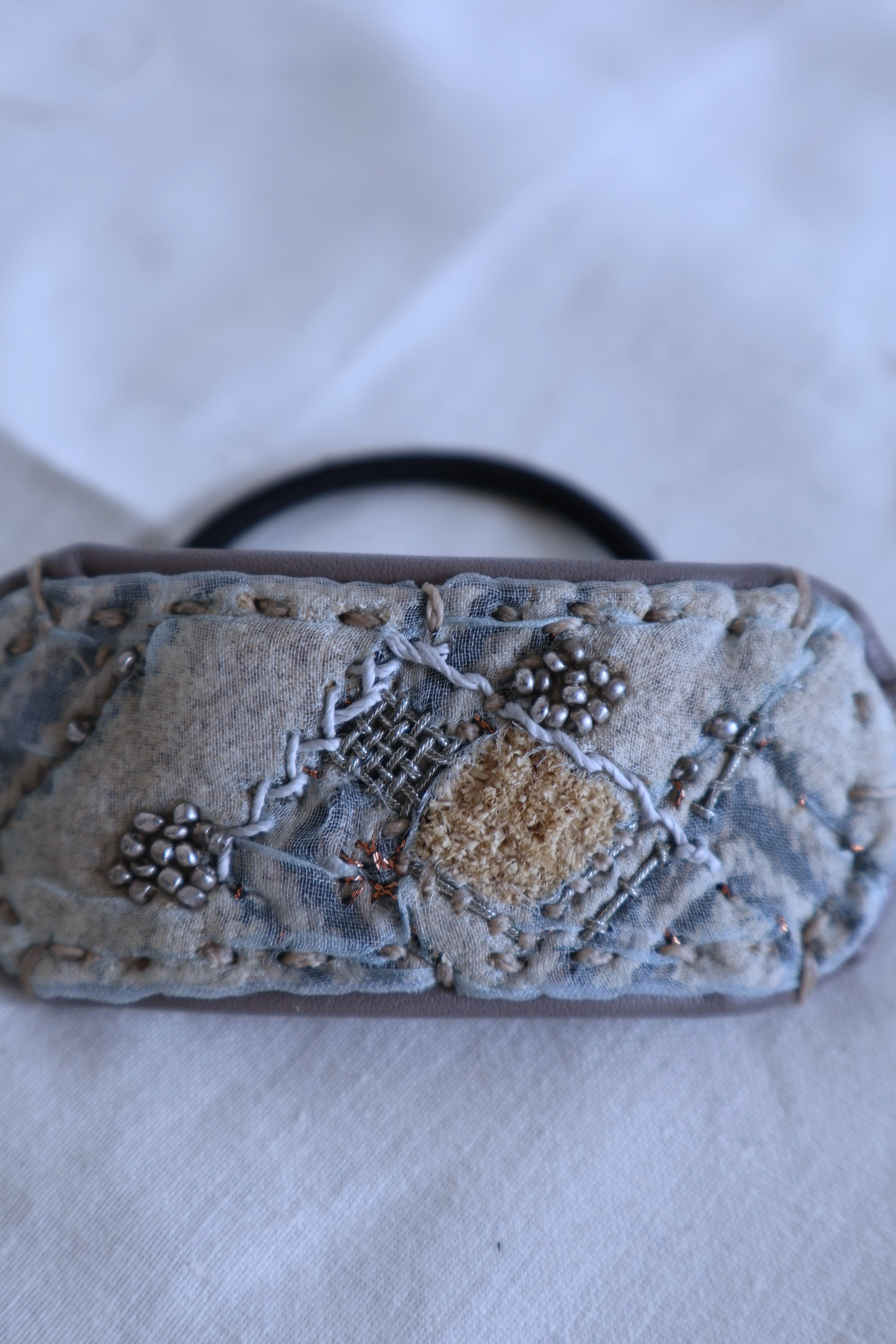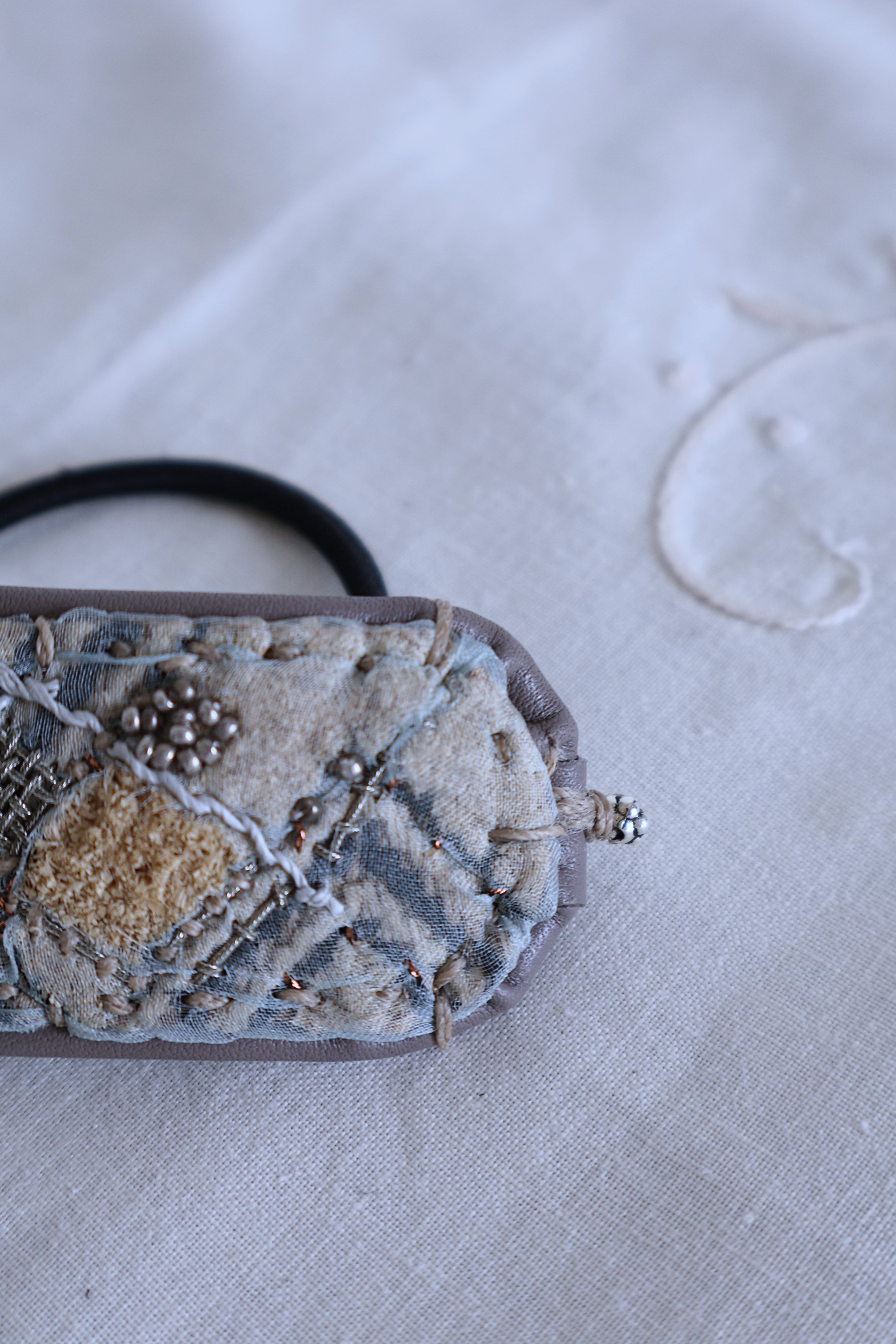 素材 クバ布 / レザー / ビーズ / オーガンジー